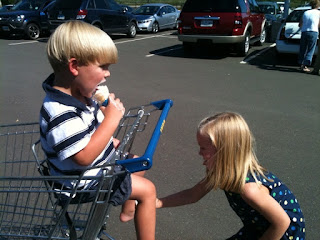 And on the way back from NYC, we stopped at Ikea in New Haven so Katie could get some stuff for her dorm room. We got ice cream cones on the way out, but it was really really hot out and on the long walk back to car most of Kaden's melted all over him (and me) but Mackinna got some wipes and helped him clean up.